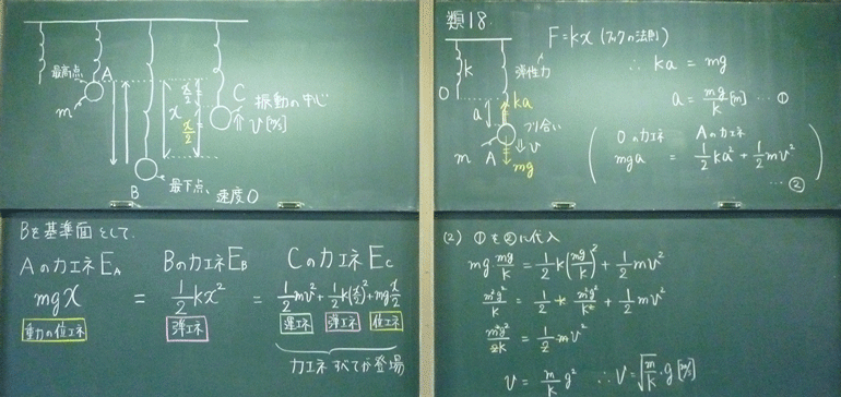 力学的エネルギーの保存(斜面を滑り降り、昇る物体とバネ)